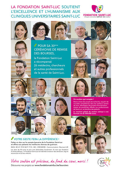 Le jeudi 2 juin, la Fondation Saint-Luc a pu bénéficier d'une pleine page dans la Libre Belgique. Une merveilleuse opportunité de présenter les lauréats 2016-2017 de la Fondation Saint-Luc, récompensés le 19 mai dernier lors de la 30ème soirée académique de remise des bourses de la Fondation.